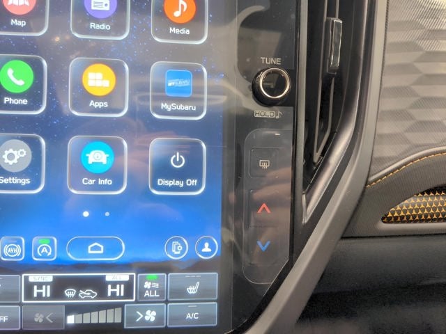 - Radio: Subaru 11.6" Multimedia Plus System -inc: valet mode, integrated center information display, AM/FM stereo HD Radio, multi-touch gesture high resolution display screen, voice activated controls, Bluetooth® audio streaming and hands-free phone connectivity w/SMS text messaging (refer to Subaru.com for cellphone compatibility), iPod control capability, smartphone integration: Android Auto and Apple CarPlay w/full screen view and wireless connection, USB and Over The Air (OTA) audio system update, steering wheel controls, 6 speakers, 3.5mm auxiliary input jack and roof mounted audio and satellite antenna