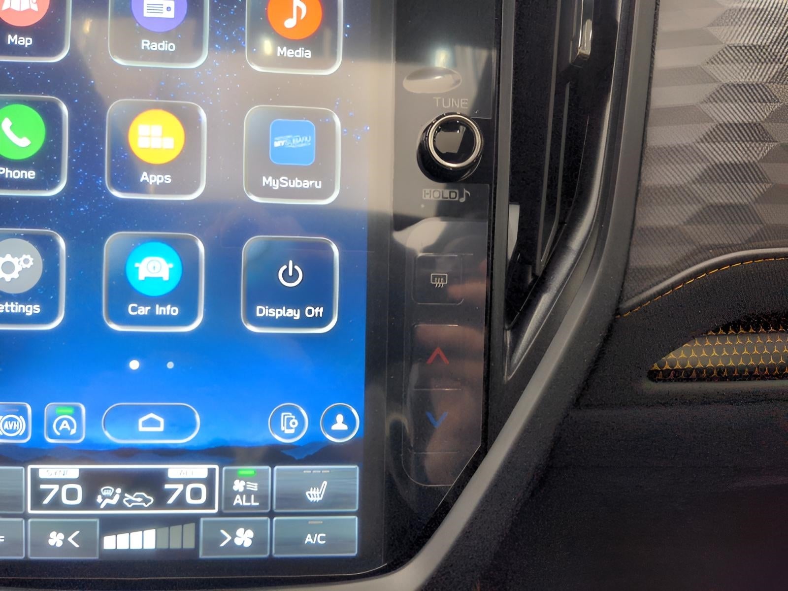 - Radio: Subaru 11.6" Multimedia Plus System -inc: valet mode, integrated center information display, AM/FM stereo HD Radio, multi-touch gesture high resolution display screen, voice activated controls, Bluetooth® audio streaming and hands-free phone connectivity w/SMS text messaging (refer to Subaru.com for cellphone compatibility), iPod control capability, smartphone integration: Android Auto and Apple CarPlay w/full screen view and wireless connection, SiriusXM satellite radio w/360L (free 4-month trial subscription included), USB and Over The Air (OTA) audio system update, steering wheel controls, 6 speakers, 3.5mm auxiliary input jack and roof mounted audio and satellite antenna
